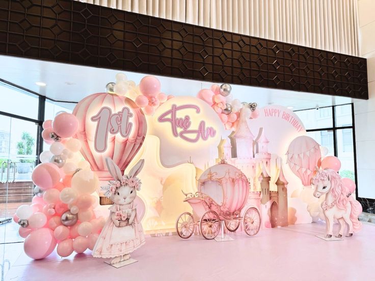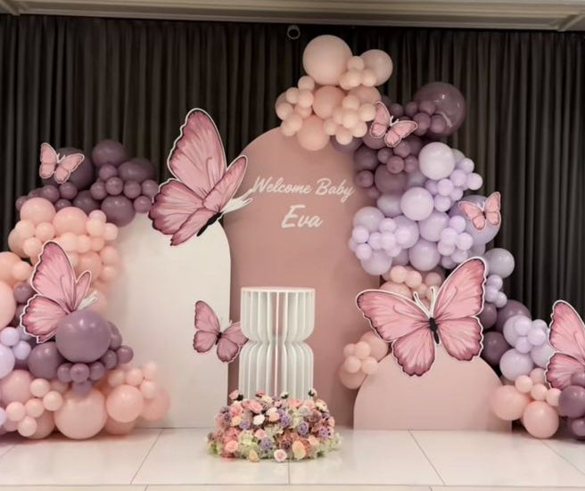 - Three custom backdrops with balloon arrangements and the celebrant’s name.