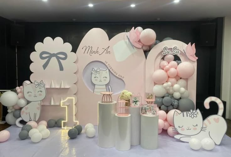 - Three custom backdrops with balloon arrangements and the celebrant’s name.