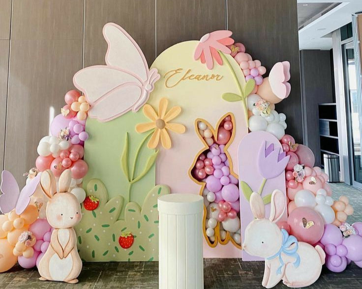 - Two custom backdrops with balloon arrangements and the celebrant’s name